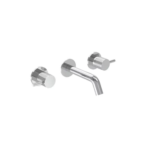Saneux COS 3 Tap Hole Wall mounted KIT - w/ Short spout (130mm) w/ Fluted handle - Chrome