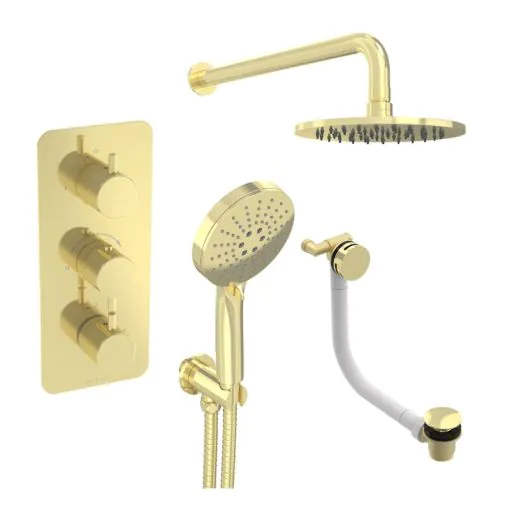 Saneux COS 3 way shower kit - w/ 3 Function Handset and Bath filler and Shower Head - Brushed Brass