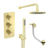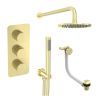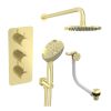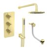 Saneux COS 3 way shower kit - w/ 3 Function Handset and Bath filler and Shower Head - Fluted - Brushed Brass