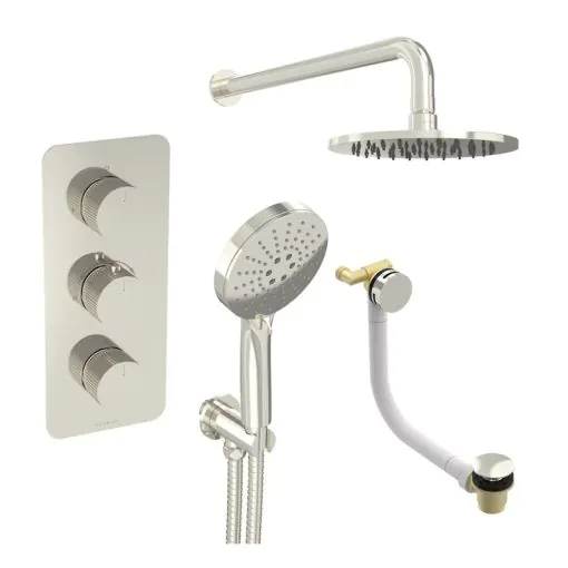 Saneux COS 3 way shower kit - w/ 3 Function Handset and Bath filler and Shower Head - Fluted - Brushed Nickel