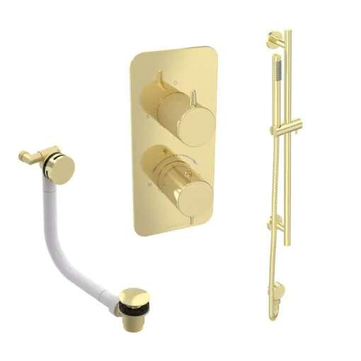 Saneux EDEN 2 way shower kit - w/ Slim Handset and Slider Rail and Bath filler - Brushed Brass