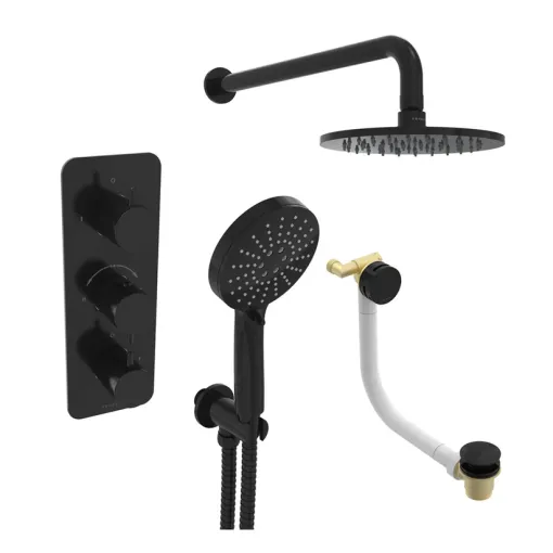 Saneux EDEN 3 way shower kit - w/ 3 Function Handset & Bath filler & Shower Head - Satin Black