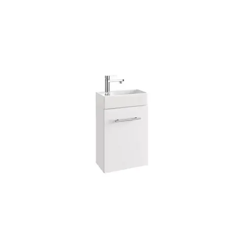 The Angelo bathroom furniture collection offers a timeless look with sleek storage solutions. This 40cm cloakroom basin unit comes in a white gloss finish with a soft close cupboard door and five year guarantee. Tap and waste not included.