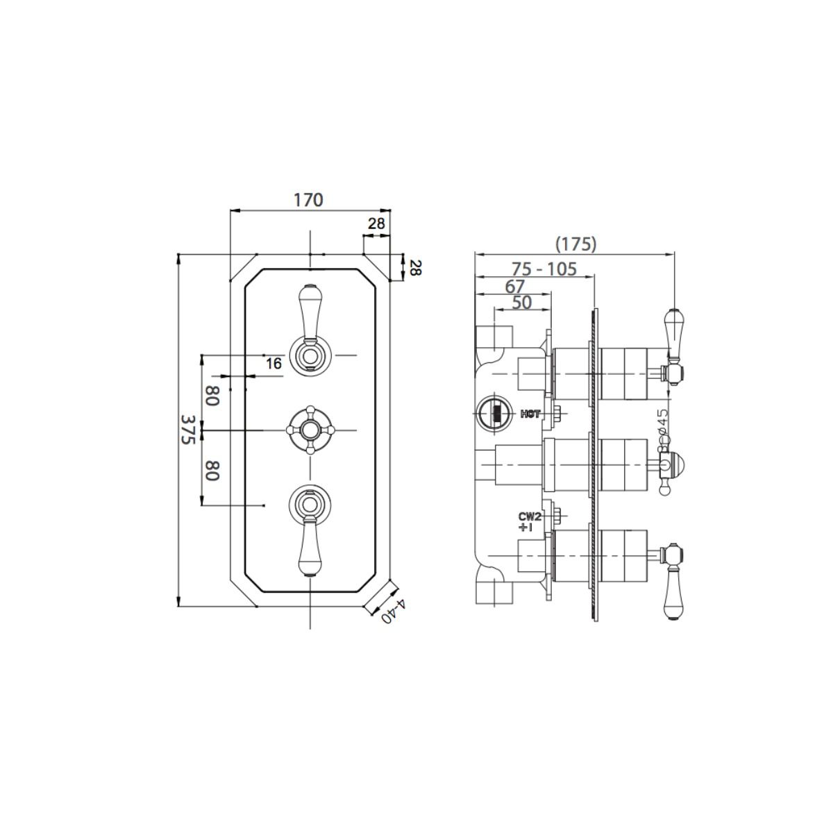 Crosswater Belgravia Lever 3000 Shower Valve 3 Way Diverter - Slimline Plate BL3000LBPC_LV_VS_V2|WLBP3000RC_V2