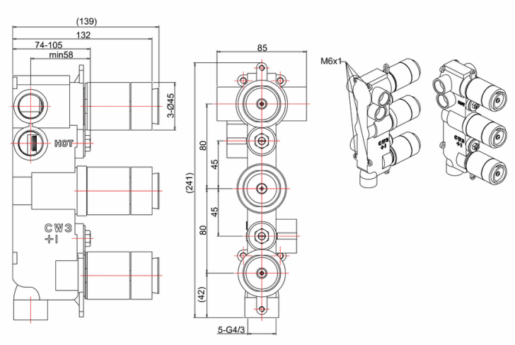 Crosswater Belgravia Lever 3000 Shower Valve 3 Way Diverter - Slimline Plate