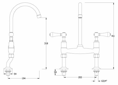 Crosswater Cucina Belgravia Dual Lever Kitchen Sink Mixer Tap – Chrome