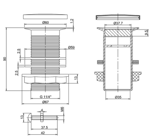 Crosswater Flip Top Unslotted Basin Waste BSW0142C