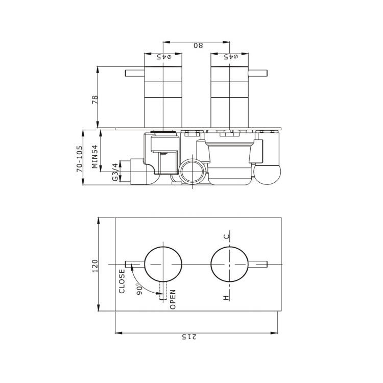 • Includes Kai Lever thermostatic shower valve with 2 way diverter (KL1500RC)