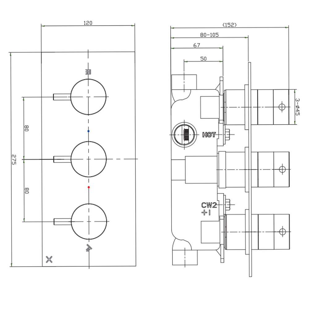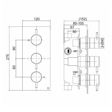 Crosswater MPRO Brushed Stainless Steel Thermostatic Triple Shower Valve PRO2000LBPV|WLBP2000R