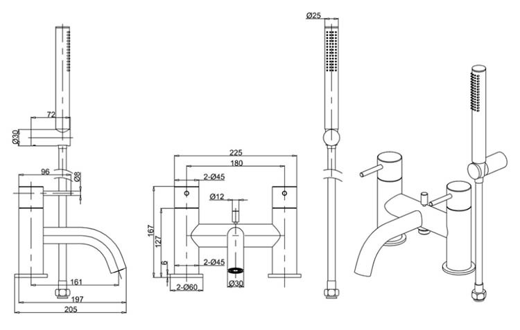 • Deck mounted bath shower mixer