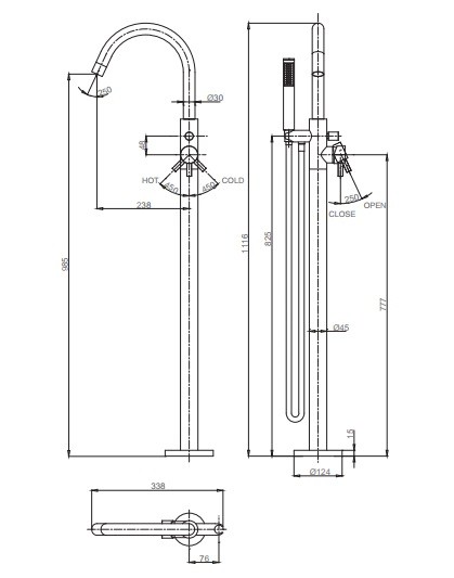 Crosswater MPRO Floor Mounted Bath Shower Mixer - Brushed Stainless Steel PRO416FV