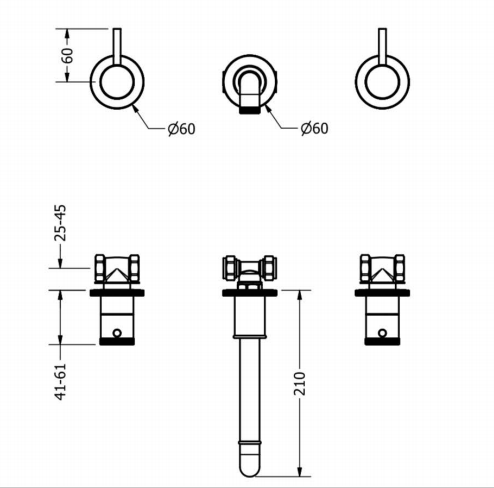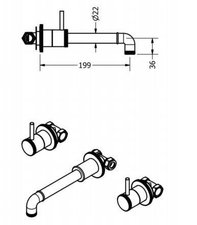 Crosswater MPRO Industrial Basin 3 Hole Wall Set - Unlacquered Brushed Brass