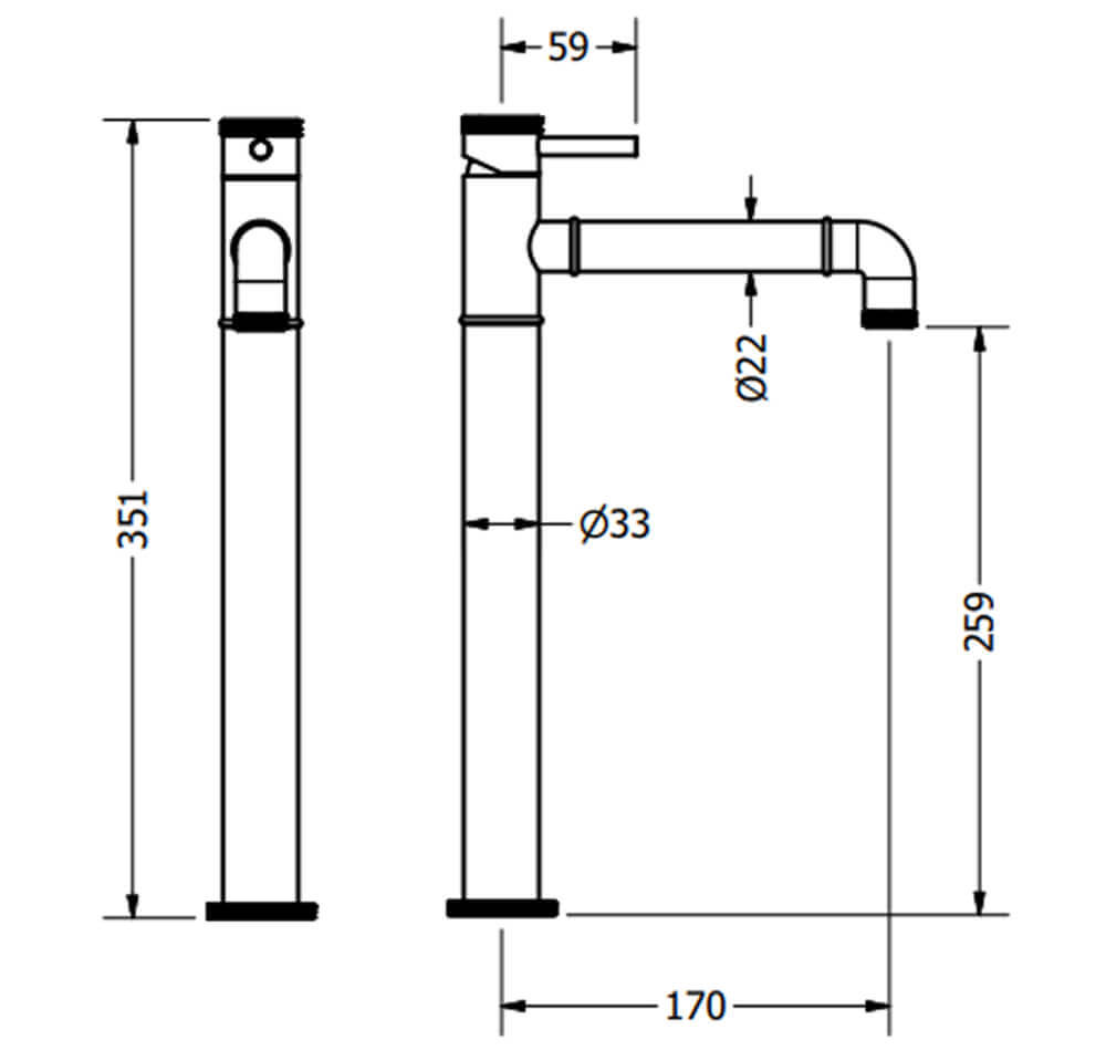 Crosswater MPRO Industrial Basin Tall Monobloc – Chrome PRI112DNC