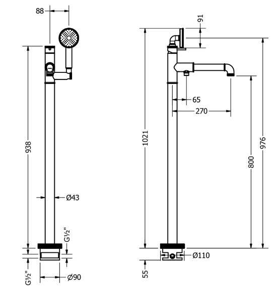 • Height: 1021mm