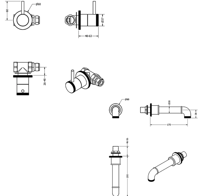 • Wall taps only please see recommended extras for spout if required