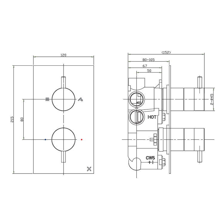 Crosswater MPRO 2 Outlet 2 Handle Thermostatic Shower Valve Matt Black