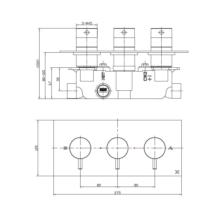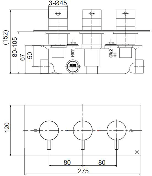 Crosswater MPRO 2 Outlet 3 Handle Thermostatic Shower Valve Matt Black