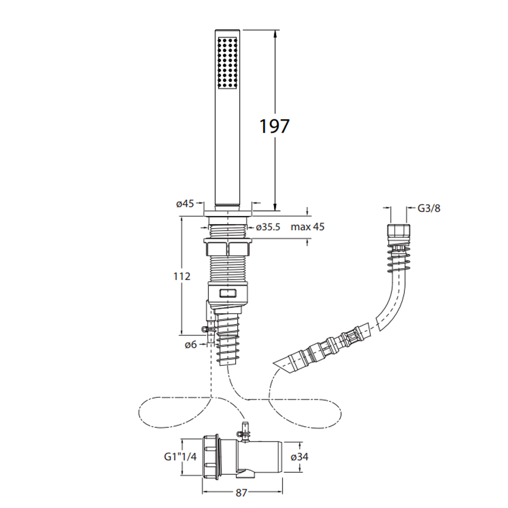 Crosswater MPRO Matt Black Follow Me Round Shower Handset and Hose PRO812M