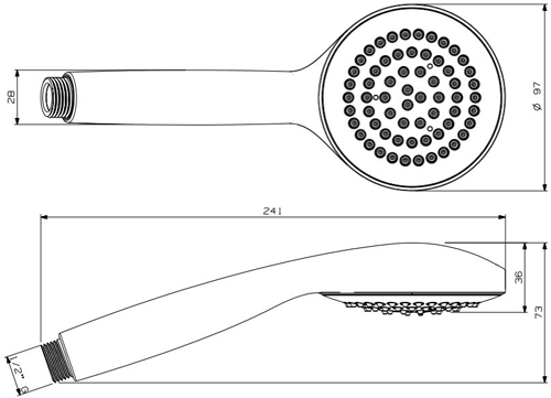 • Dimensions: Head diameter: 97mm x L (handset): 241mm x D (handset):73mm